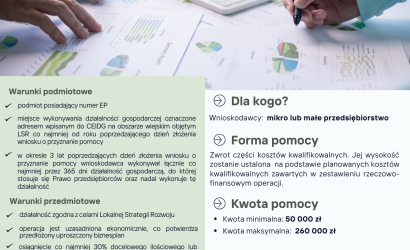 NABÓR WNIOSKÓW – ROZWÓJ PRZEDSIĘBIORCZOŚCI POPRZEZ ROZWIJANIE POZAROLNICZEJ DZIAŁALNOŚCI GOSPODARCZEJ (ROZWÓJ DG) DLA KOGO? Przeznaczony dla mikro i małych przedsiębiorstw z terenu[...]